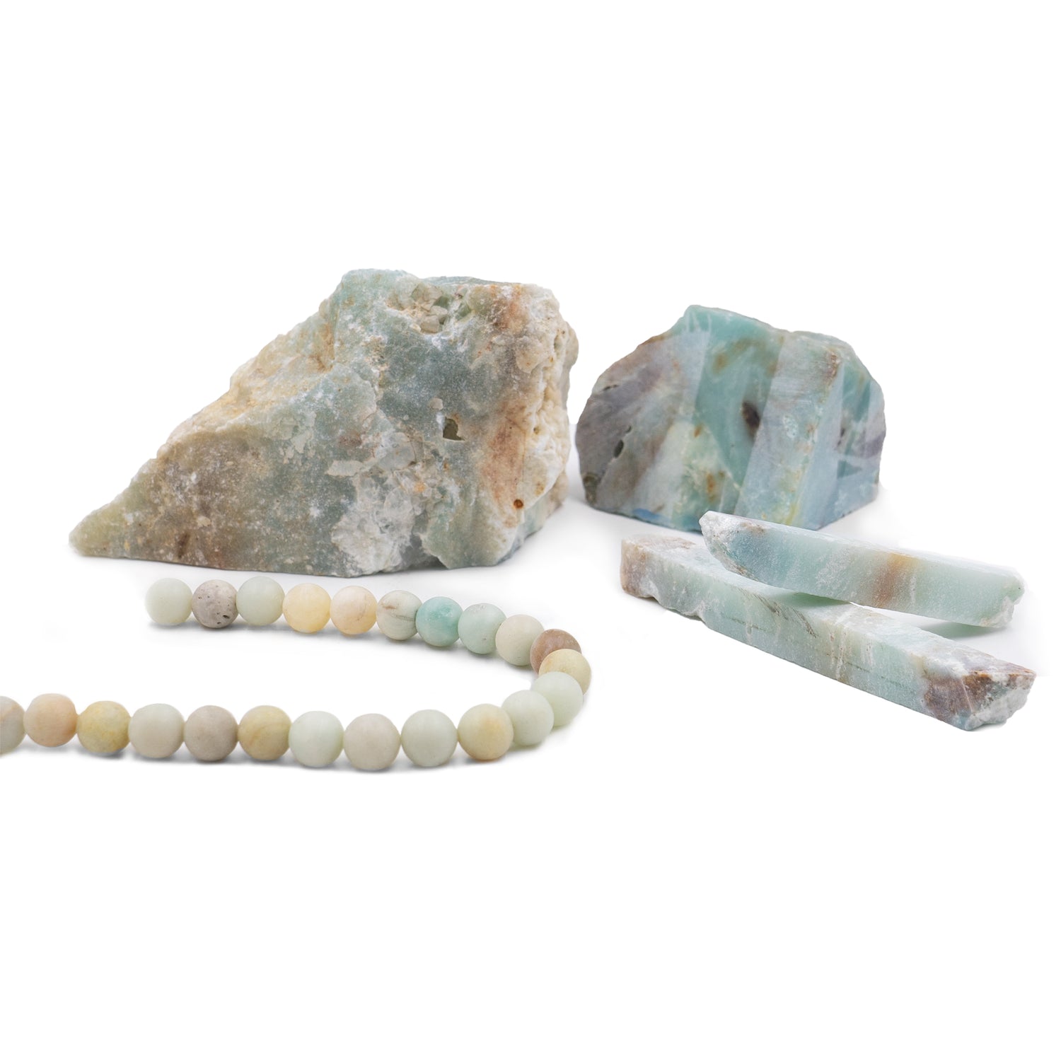 Ion plated stainless steel and all-natural, one-of-a-kind, semi-precious stones that have been ethically sourced from all over the world.