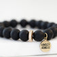 Gold And Black Matte Hypoallergenic Nickel Free Beaded Stretch Bracelet. Custom 18K Yellow Gold Ion Plated Stainless Steel Charm Accents And Designed With Love In Texas. Size Small, Medium, Large, and Extra Large Ranging From 6.25 - 7.25 Inch Circumference With Custom Sizing Available On Select Pieces.
